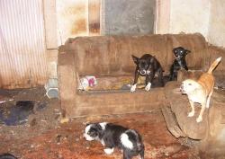 | Below are pictures taken at the HOME these dogs lived in, along with two people. OVER 178 dogs were removed from this home! |